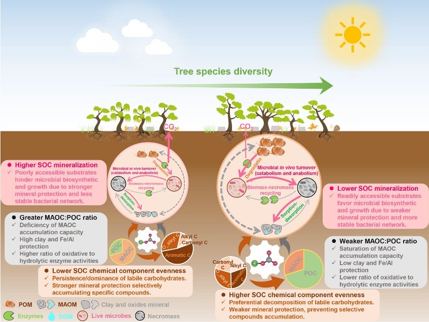 中国科学院环江喀斯特生态系统观测研究站李德军团队研究揭示:树种多样性通过重构土壤碳稳定途径,显著增强了亚热带喀斯特森林土壤碳的持久性。