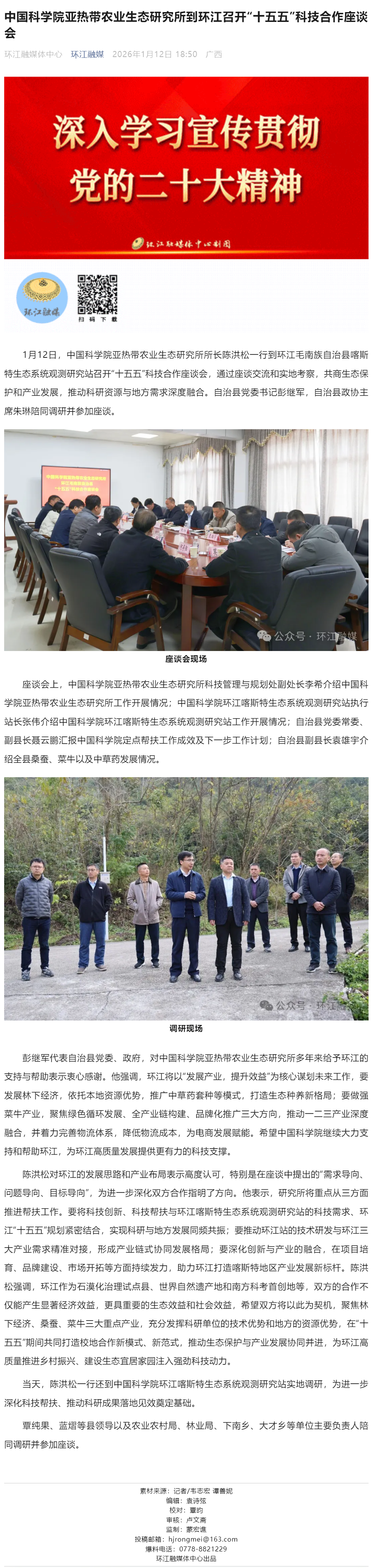 【环江融媒】中国科学院亚热带农业生态研究所到环江召开“十五五”科技合作座谈会