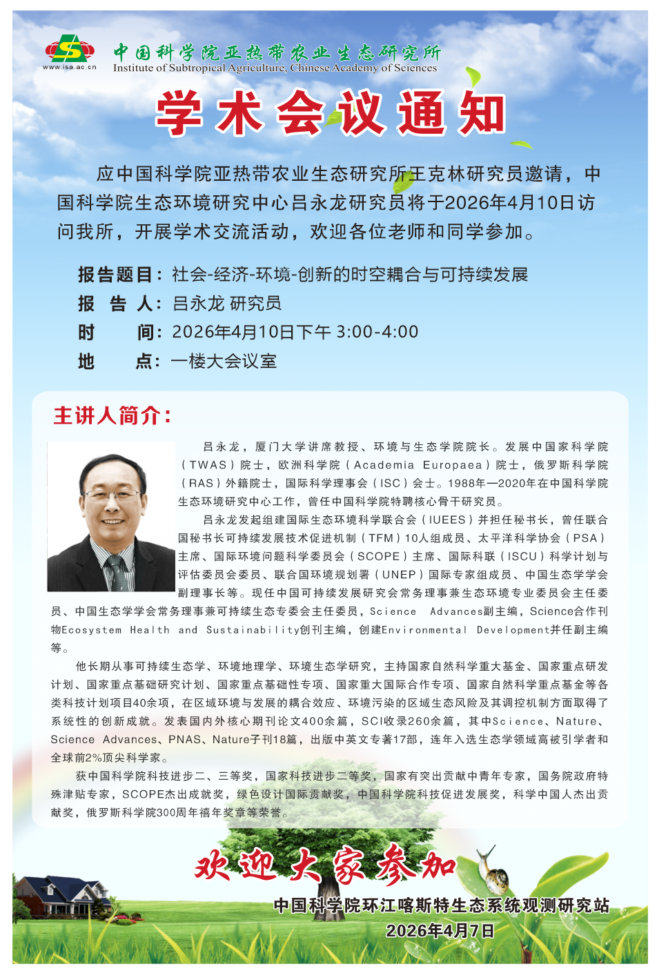学术报告通知|吕永龙 厦门大学