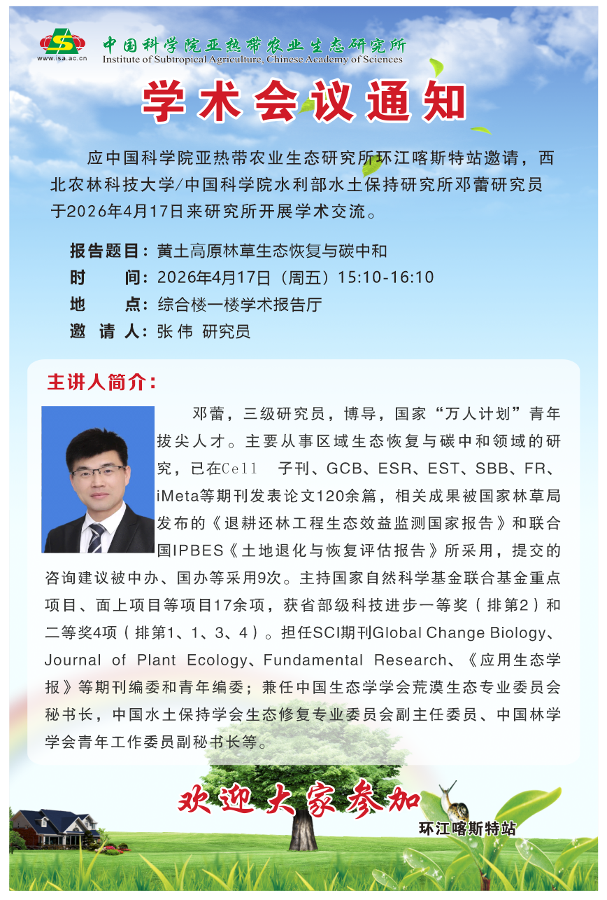 学术报告通知|邓蕾 西北农林科技大学/中国科学院水利部水土保持研究所