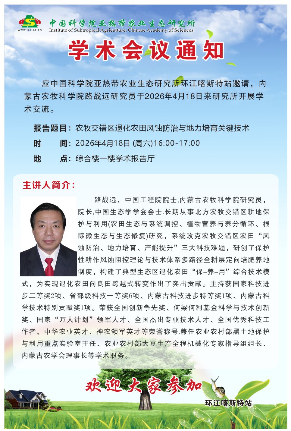 学术报告通知|路战远 院士 内蒙古农牧科学院