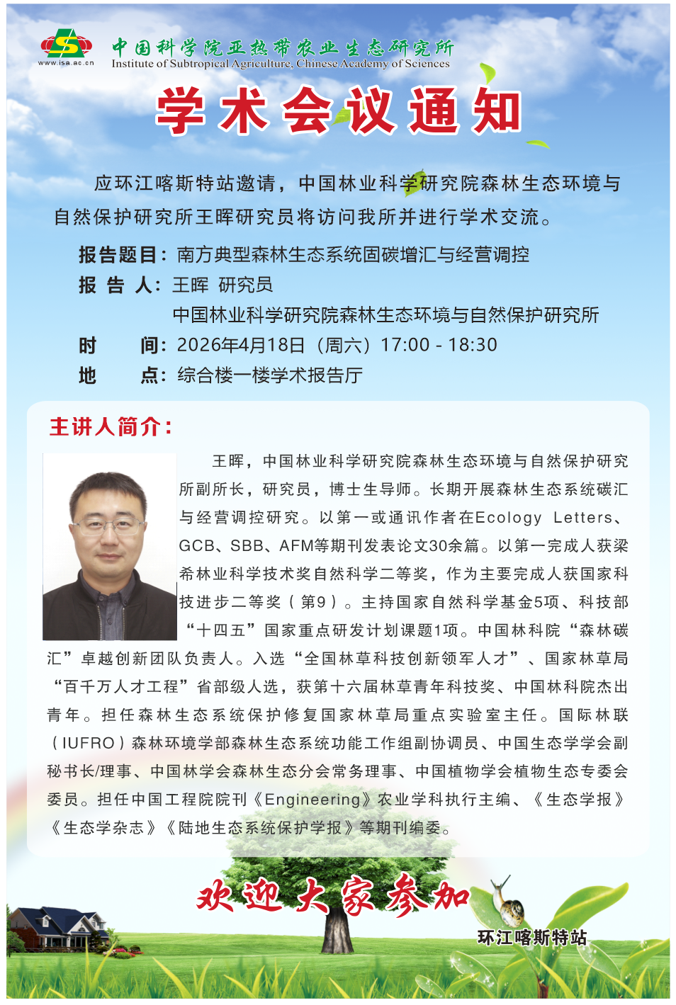 学术报告|张晨露 河南大学;王晖 中国林业科学研究院
